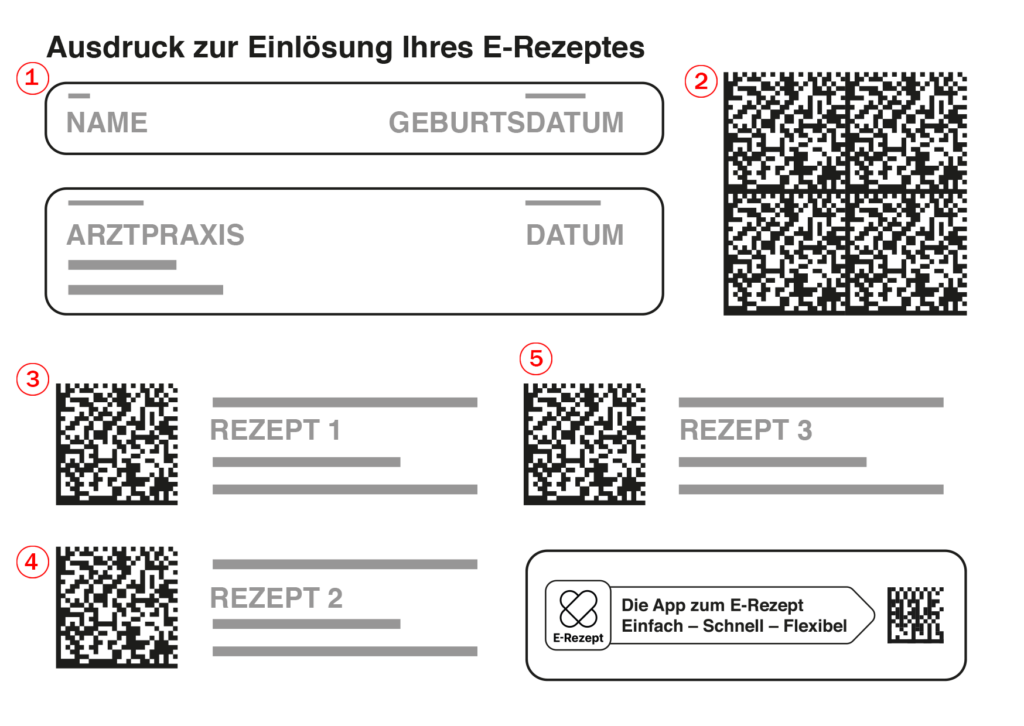 Ab 2024 ist das E-Rezept in Deutschland Pflicht. Die Ärzte geben Ihnen entweder ein Papier mit einem QR-Code oder schreiben Ihr Medikament auf Ihre Krankenkassenkarte. Derzeit werden etwa 80 % der Medikamente direkt in die Karte verschreiben und nicht über einen E-Rezept Ausdruck mit QR-Code ausgegeben. Wenn Sie einen Zettel mit QR-Code bekommen, können Sie ihn in Ihrer Apotheke abgeben oder in einer Online-Apotheke einscannen lassen. So sieht ein “QR-Code-Rezept“ aus: